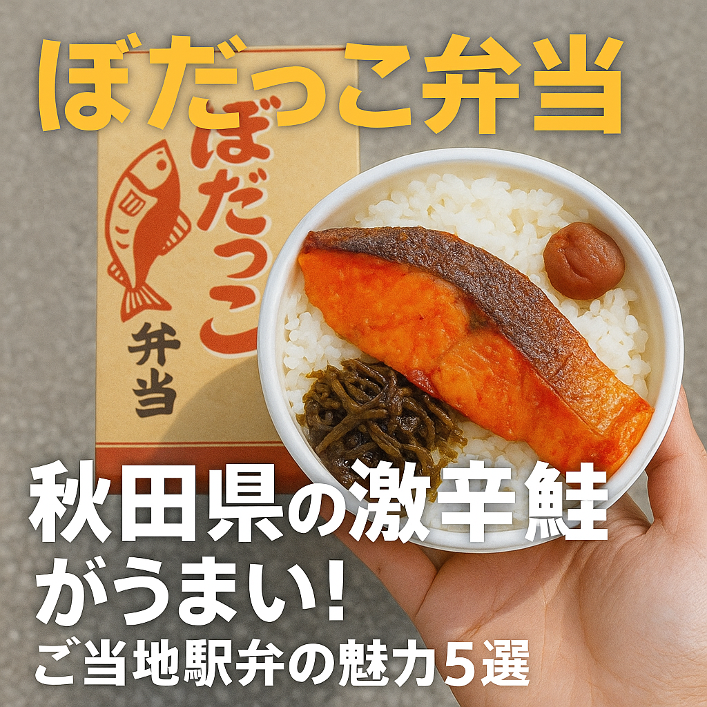 秋田県の名物「ぼだっこ弁当」は、昔ながらの塩鮭文化を受け継ぎながら、激辛仕立てで現代風にアレンジされた魅力あふれる駅弁です。