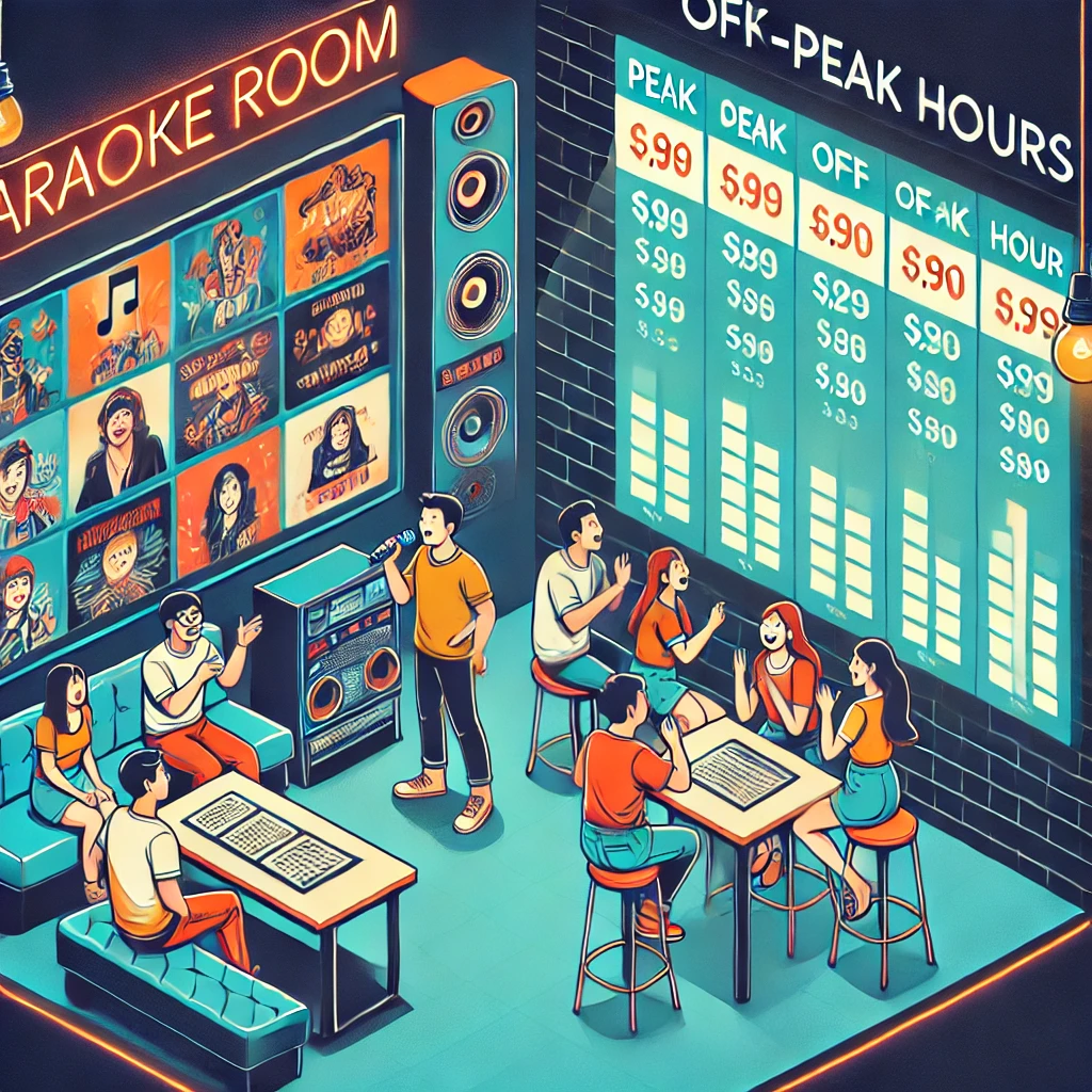 カラオケ料金は平日の昼間が最も安い時間帯です。特に、11時〜17時の時間帯は狙い目です。