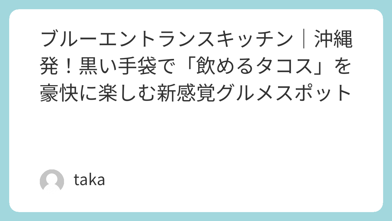 この記事では、沖縄発グローバルブランドの Blue Entrance Kitchen(ブルーエントランスキッチン) の魅力を徹底解説します。沖縄らしさと革新が融合したタコスの秘密、黒い手袋スタイルのワイルド体験、アクセス情報まで、濃厚にご紹介していきます。