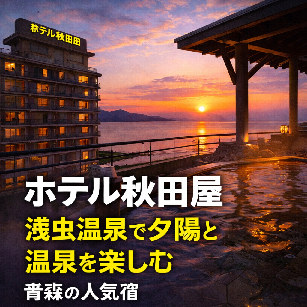 ホテル秋田屋は、浅虫温泉の中でも「景色」「温泉」「食事」のバランスが取れた宿です。陸奥湾に沈む夕陽を眺めながら温泉に浸かる時間は、青森旅行の中でも特別なひとときになるでしょう。