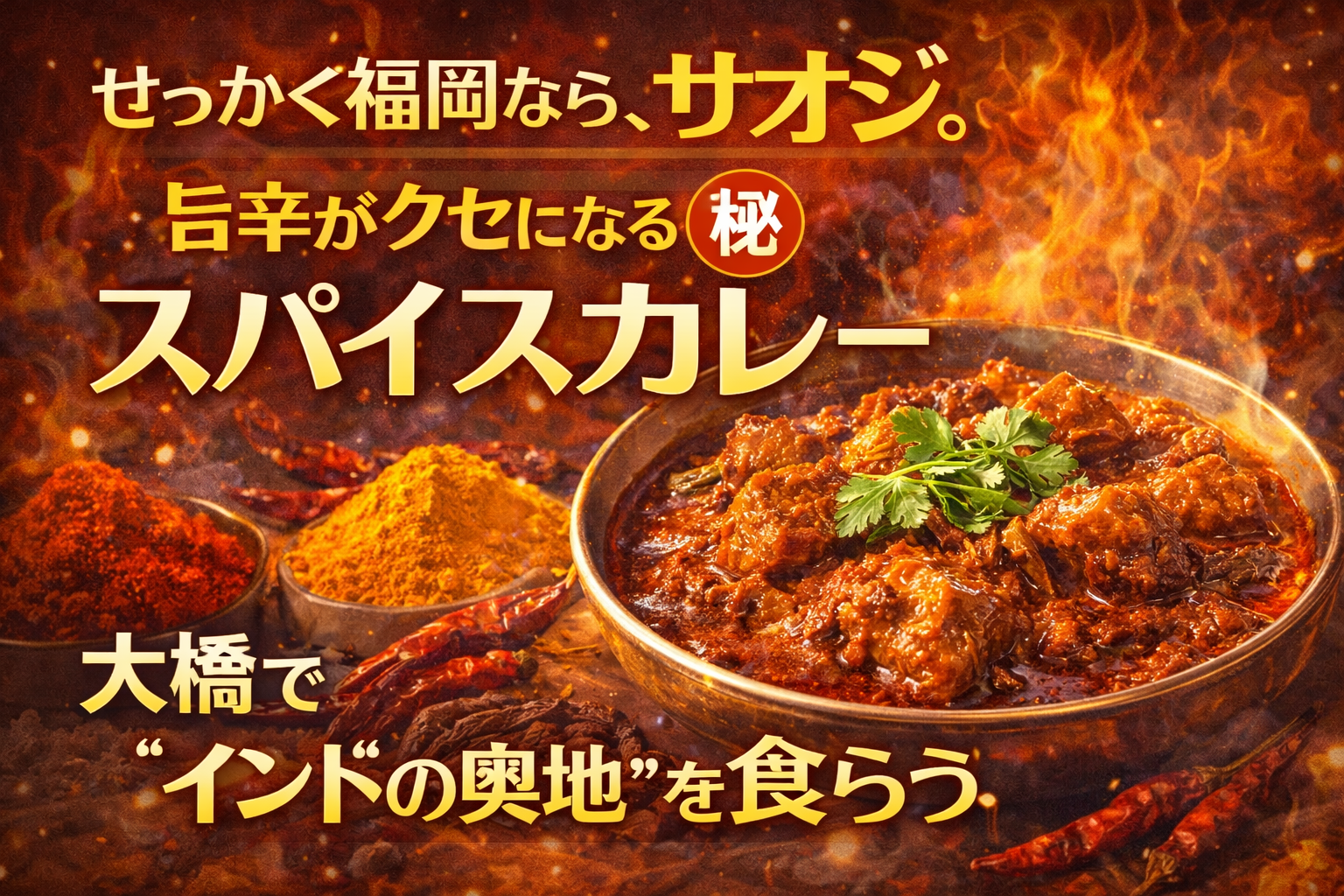 福岡の夜に、もつ鍋でも水炊きでもなく、スパイスで殴られる快感を選ぶ。これ、かなり「せっかく」感あります。